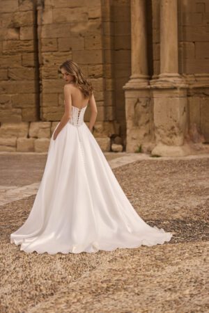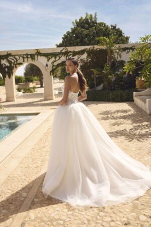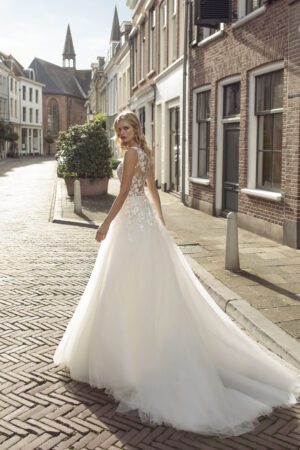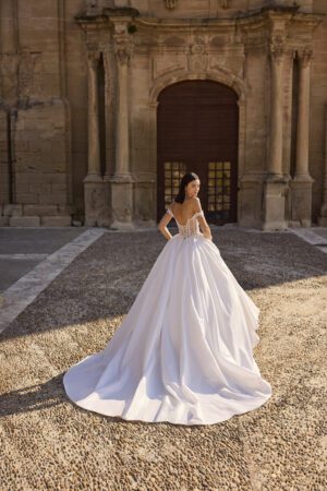 Ball Gown brudekjoler kendetegnes ved en tætsiddende corsage og et voluminøst underskørt, som giver bruden et eventyrligt look. Ball Gown kjoler er perfekt til bruden der drømmer om en romantisk og eventyrlig brudekjole med flere lag tyl, perler eller glimmer.