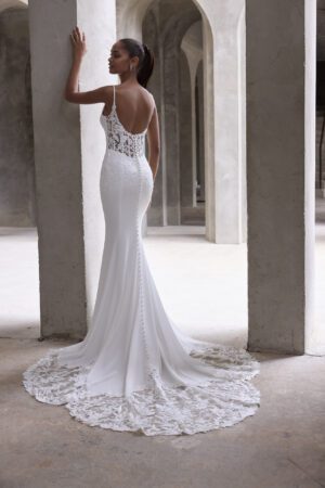 Havfrue brudekjolen sidder helt tæt til kroppen fra brystet og ned til låret eller knæet. Herefter går skørtet udad, i et slæb der variere mellem enkelt, vidunderlige blonder eller et væld af tyl. Havfrue kjolen er perfekt for bruden som ønsker at vise sine smukke kurvene frem.