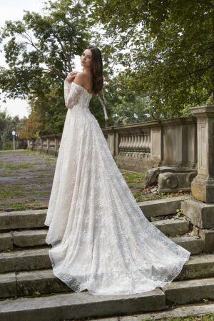 A-line brudekjolen er en klassisk og tidløs silhuet, der smigrer de fleste kropsformer. Den er kendetegnet ved en tæt pasform ved overdelen, der fremhæver taljen og derefter flyder gradvist ud i en A-form fra hofterne og ned. Dette skaber et elegant, men stadig afslappet look, perfekt til både formelle og uformelle bryllupper. A-line kjolens alsidighed gør den ideel til brude, der ønsker både komfort og stil, mens den giver bevægelsesfrihed og passer til alle typer bryllupstemaer og -lokationer.