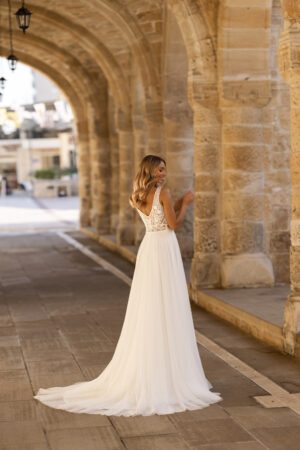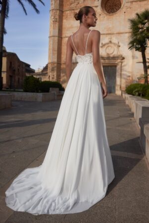 Brudekjoler i et enkelt snit udstråler tidløs elegance og ren skønhed. Denne minimalistiske stil er perfekt til brude, der ønsker et sofistikeret og underspillet look på deres store dag. Enkle brudekjoler fokuserer på rene linjer og en smuk pasform, der fremhæver brudens naturlige skønhed uden overflødige detaljer. Ofte lavet af luksuriøse stoffer som satin eller silke, er disse kjoler ideelle til moderne og klassiske bryllupper. Et enkelt snit giver et elegant, stilrent udtryk, der passer til enhver brud, der ønsker et tidløst og ubesværet look.