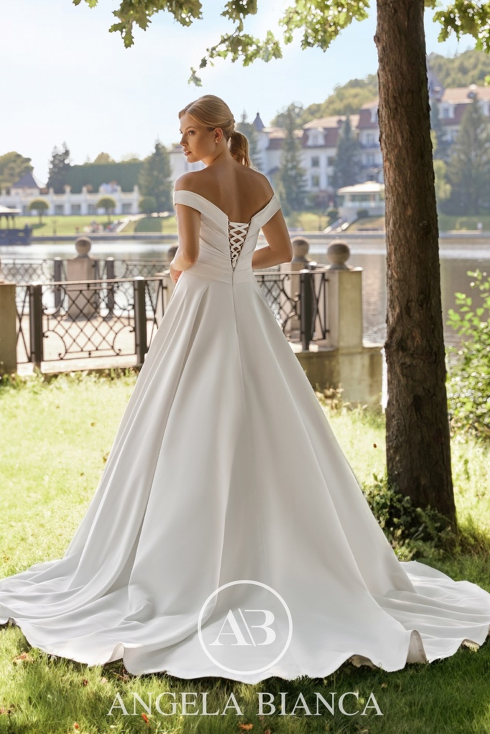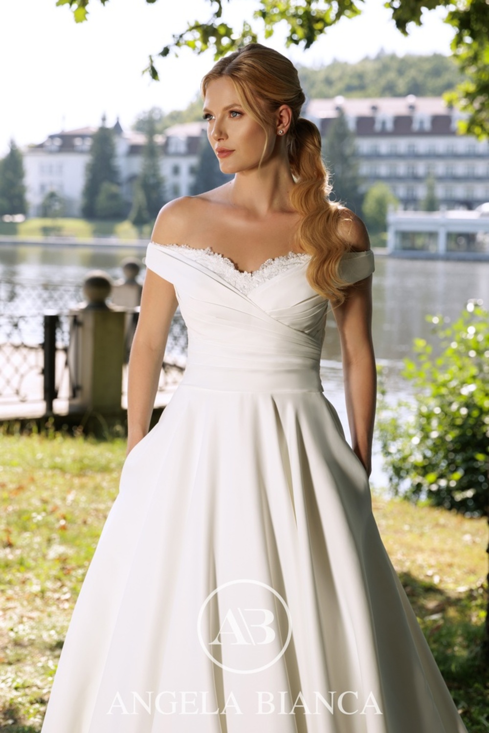 Brudekjole 1110 fra Monica Loretti er en fortryllende Ball Gown, designet til at fremhæve elegance og romantik. Med et off-shoulder design og blonder på den sweetheart-inspirerede udskæring kombineret med luksuriøst Mikado-stof, skaber kjolen en perfekt balance mellem tradition og moderne stil. Den fulde nederdel med lommer tilføjer både drama og praktisk funktionalitet, mens snøreryggen sikrer en ideel pasform. Perfekt til den klassiske brud, der ønsker at gøre indtryk på sin store dag.
